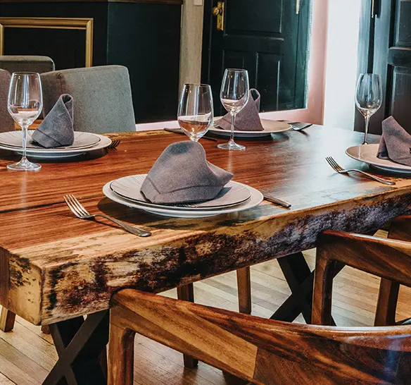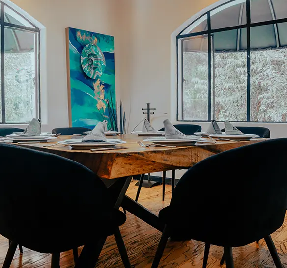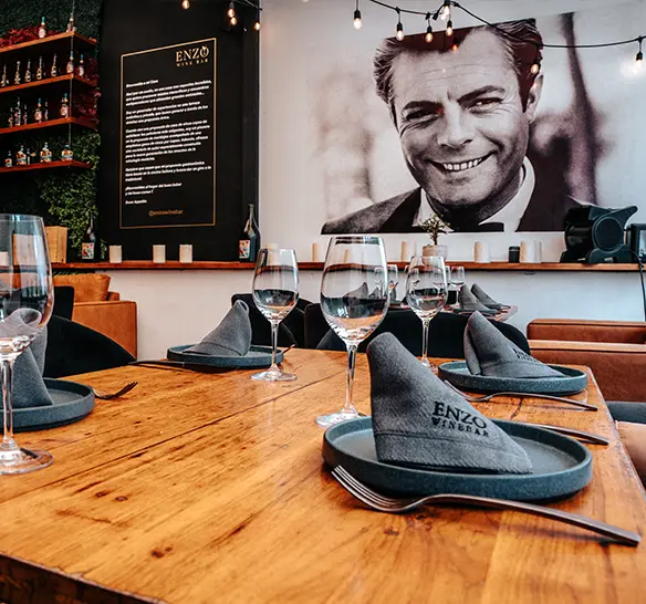 Entorno con luz suave, discreto y fresco, para amantes del vino y el buen comer.